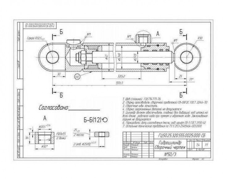 Техническая характеристика гидроцилиндра ГЦ 50.25.320.555.25 |