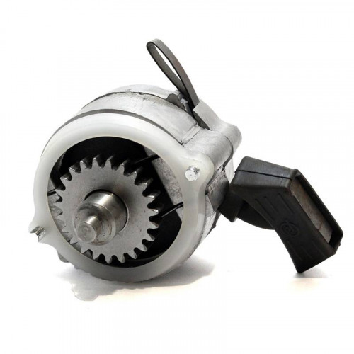 В случае неисправности стартера или аккумулятора пусковой двигатель заводится вручную пусковым дублером, для чего необходимо рывком потянуть за рукоятку (поз.2) и вытянуть трос (поз.11), который вращает вал (поз.3) с шестерней (поз.4). Назад в корпус трос затянется обратным вращением вала, которое создает пружина (поз.8).
