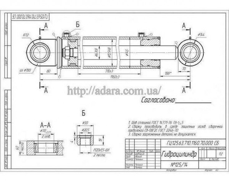 Техническая характеристика гидроцилиндра ГЦ 125.63.710.1160.70 |