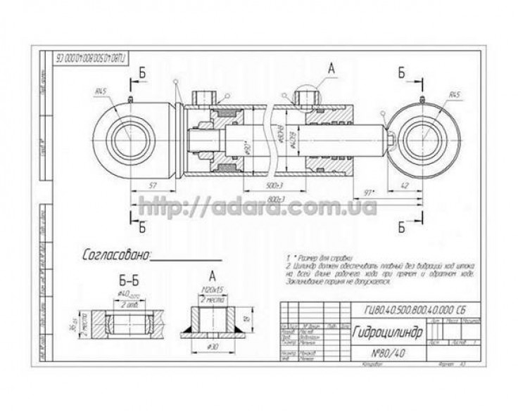 Техническая характеристика гидроцилиндра ГЦ 80.40.500.800.40 |