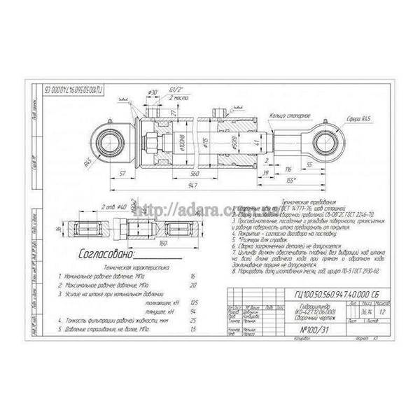Технічна характеристика гідроциліндра ГЦ 100.50.560.947.40 |