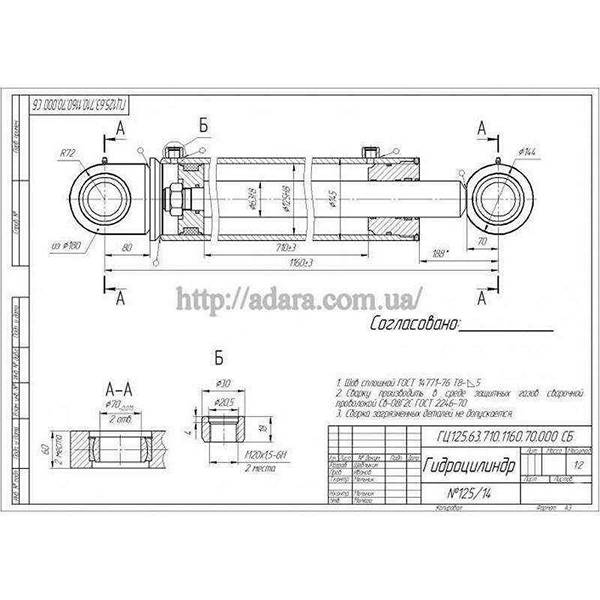 Технічна характеристика гідроциліндра ГЦ 125.63.710.1160.70 |