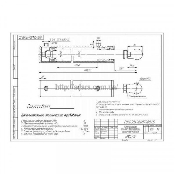 Технічна характеристика гідроциліндра ГЦ 80.50.400.697 |