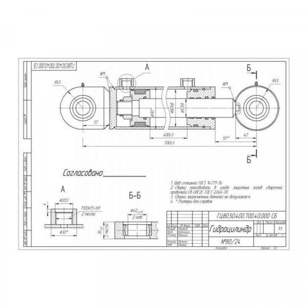 Технічна характеристика гідроциліндра ГЦ 80.50.400.765.40 |