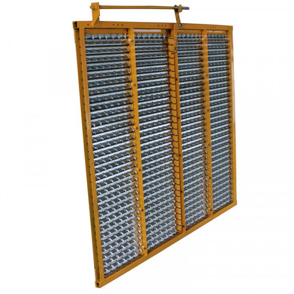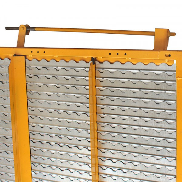 Решето верхнє 54-2-12-3В НВР (Евроваріант, технологія John Deere, Жовті) являє собою зварений, квадратний каркас з квадратної труби з встановленими на ньому жалюзями з штампованого металу товщиною 0,8 мм. При цьому жалюзі виконані спеціальним штампом, в якому задній вусик має таку форму, і так відігнуть, як на імпортних комбайнах, що дозволяє охолоджувати зерно максимально ефективно. Встановлюється це решето в системі очищення зерна, відразу після стрясной дошки і називається верхнім бо розташоване вище нижнього решета. Служить для просіювання зернової маси, все що проходить крізь жалюзі потрапляє на нижню решето. Останні роки все аграрії йдуть від використання решіт з класичної гребінкою і переходять на евроваріант. За такою ж технологією виконані решета всіх відомих світових лідерів John Deere, Claas і ін. Відрізняється від нижнього розмірами і функцією регулювання нахилу жалюзі. В даному випадку розглядаються верхні решета жовтого кольору, це продукція українського виробництва і деякий час назад вона відрізнялася від чорних в гіршу сторону. Був недостатньо якісний штамп для виробництва жалюзі, і вони не давали тій мірі кавітації, яка потрібна. На даний момент штамп виправлений і решета повністю виконують свою функцію. Рекомендуємо не змінювати окремо або верхнє, або нижнє, а міняти комплектом. Ви можете купити ці решета комплектом: верхнє + нижнє + подовжувач верхнього решета. На комбайні встановлюється в кількості 1 шт.