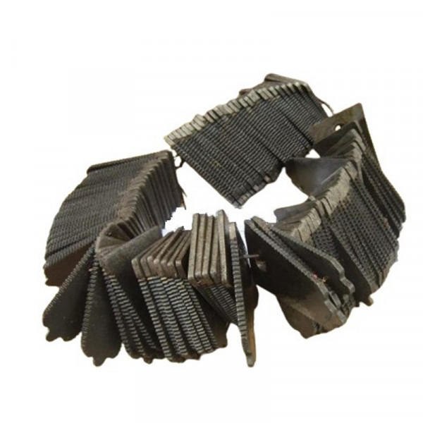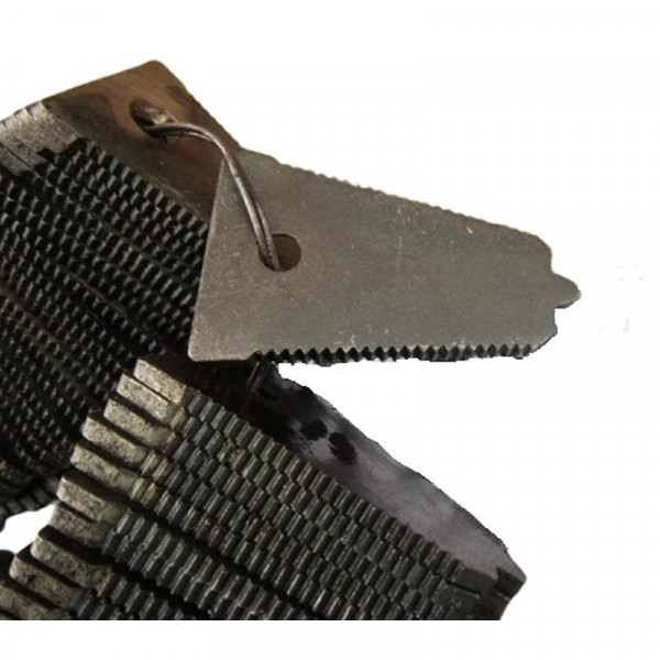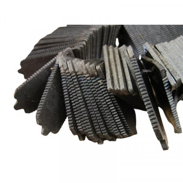 Відгуків немає | Написати відгукПластина протирізальна (противорізу) Н.066.56 в каталозі називається вкладиш, але всі називають цю деталь противорізу. У нас вона в продажу є з правильного матеріалу Сталь 65Г. Являє собою невелику клиноподібний пластину завтовшки 3 мм з нарізування зубцями по краях і отвором для кріплення в основі. Кріпиться до пальців подвійним і одинарним з внутрішньої сторони і разом з ними жорстко фіксується. Рухомий ніж із закріпленими на ньому сегментами, переміщаючись горизонтально, зрізає колосся, при цьому вкладиш виступає в ролі протіворежущей пластини для сегмента. На одному комбайні встановлюється в кількості 60 штук.