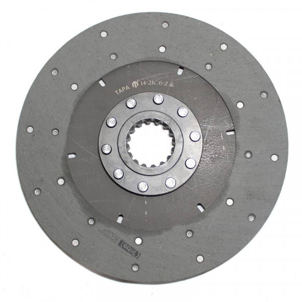 Являє собою конструкцію, що складається зі сталевої маточини з внутрішніми шліцами, диска, фрикційних накладок і заклепок. Конструкція є жорсткою, так як до маточини приклепується заклепками диск, а до диска - накладки з фрикційного матеріалу. Маховик колінчастого вала передає обертальний момент від двигуна СМД на жорсткий диск, а він - на первинний вал коробки передач. У побуті цей диск можуть називати «диском молотарки» або «диском, який стоїть зверху», так як диск коробки передач стоїть знизу комбайна. Для надійної та безперебійної роботи зчеплення диск повинен бути чистим і сухим. На комбайні Нива СК-5М встановлюється в кількості 1 шт., але часто купують 2 шт. і замінюють м'який диск, всередині муфти зчеплення на жорсткий. Фрикційні накладки стираються досить швидко і диск підлягає заміні. Припустимо проводити заміну жорстких дисків на аналогічні м'які. М'які диски мають більший термін експлуатації, але і велику ціну. Є в наявність диски двох різних виробників: кооперативного і заводу «Тара», ціна на них відрізняється, уточнюйте у менеджера.