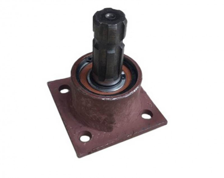 Відгуків немає | Написати відгукВисота стакана -45мм. Стакан насоса-дозатора трактора ЮМЗ під товсту плиту уявляє собою складальну одиницю. Корпус стакана - зварений і складається з циліндричної втулки і привареного до неї квадратного фланця з внутрішнім отвором і 4-ма кріпильними отворами. У внутрішньому отворі втулки встановлені підшипники, в яких обертається вал з шліцами. Підшипники закріплені стопорними шайбами.