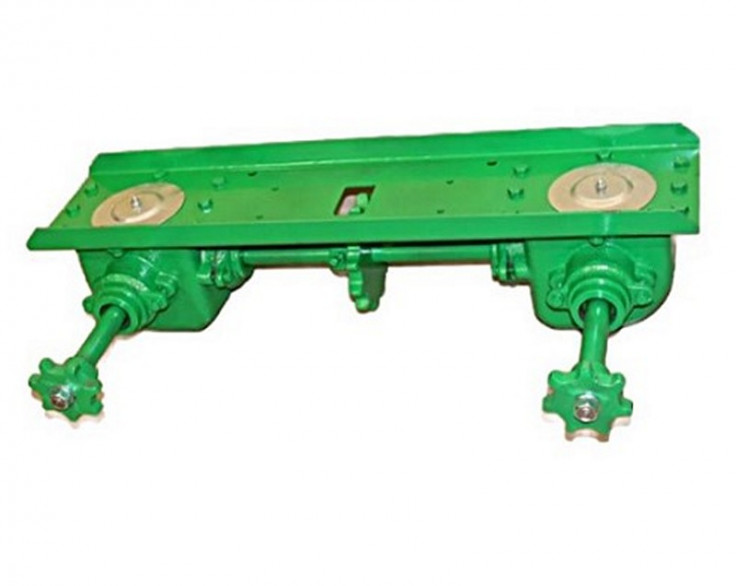 Крышка с редукторами представляет собой сборочный узел, в состав которого входят два конических редуктора в сборе с валами, шестернями, подшипниками, звездочками и крышки, на которой они крепятся. Весь этот узел крепится в нижней части транспортера загрузочного ЗП 02.000 зернометателя ЗМ-60 производства Ореховского завода. (В каталоге ЗМ-60 Вы можете посмотреть, где именно они устанавливаются. Каталожный номер - ЗП 02.300).