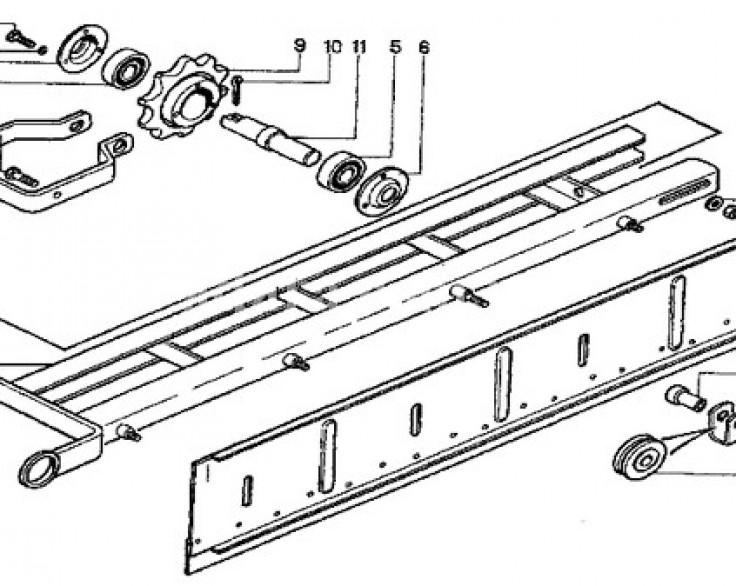 Питатель правый представляет собой сборную конструкцию, которая состоит из рамы питателя, щитка, рамки натяжная в сборе с осью и звездочкой, ролика, крышки, ограничителя и втулки. Поставляется без скребковой цепи. Питатель правый крепится к коническому редуктору и с правой стороны нижней части корпуса транспортера загрузочного ЗП 02.000 зернометателя ЗМ-60 производства Ореховского завода. (В каталоге ЗМ-60 Вы можете посмотреть, где именно они устанавливаются. Каталожный номер - ЗП 02.080). Питатель можно поднимать и опускать при помощи рукоятки и каната проходящего через ролик. Служит для транспортировки зерна к центру загрузочного транспортера.