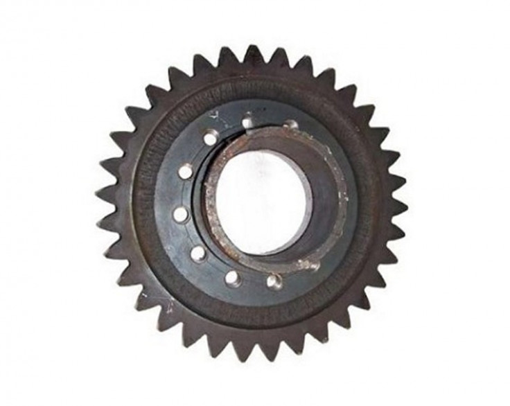 Шестерня центральная 6010.16.00.022 редуктора привода насосов К-700, К-701 нового образца (внутри без шлицов и отверстия для крепления по кругу). Устанавливается на центральном валу РПН и в отличие от шестерни старого образца, которая устанавливается на внутренние шлицы, эта шестерня крепится болтами к фланцу вала нового образца. Шестерни могут иметь 34 зуба и иногда 36 зубьев. Количество зубьев особой роли не играют, главное что там одинаковый модуль, изменится только передаточное число, и то не на много. Служит для передачи вращательного момента на боковые шестерни. На одну единицу техники устанавливается в количестве 1 шт.