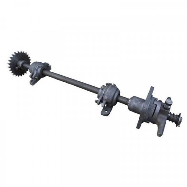 Ход задний представляет собой узел, состоящий из двух отдельных сборочных узлов, установленных на раме с ходом ЗП 01.000 зернометателя ЗМ-60 производства Ореховского завода. (В каталоге ЗМ-60 Вы можете посмотреть, где именно они устанавливаются. Каталожный номер – ЗП 01.220). Каждый из сборочных узлов состоит из следующих деталей – вала, звездочки, двух подшипниковых узлов, колеса со ступицей. В одном из сборочных узлов на вал дополнительно устанавливается муфта отключения колеса от привода. Ход задний осуществляет движение зернометателя в разных режимах и направлениях.