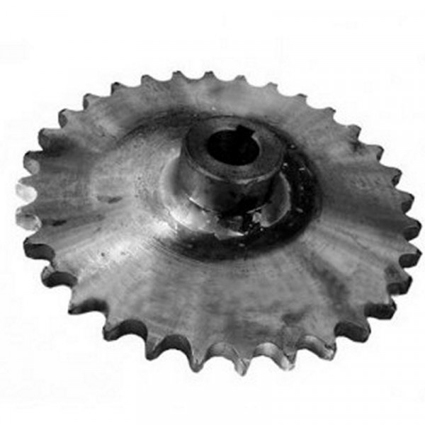 Звездочка редуктора хода представляет собой стальную деталь в форме диска с цилиндрической ступицей, с зубчатым венцом (z=32, t=19,05). По оси ступицы звездочки расточено цилиндрическое отверстие со шпоночным пазом. На ступице звездочки просверлено отверстие для осевой фиксации звездочки на валу. Звездочка находится на входном валу редуктора хода, который входит в узел механизма самопередвижения ЗП 07.000 зернометателя ЗМ-60 производства Ореховского завода. (В каталоге ЗМ-60 Вы можете посмотреть, где именно они устанавливаются. Каталожный номер - ЗП 07.060). Служит для передачи вращательного движения с контрпривода через цепную передачу на вал редуктора хода.