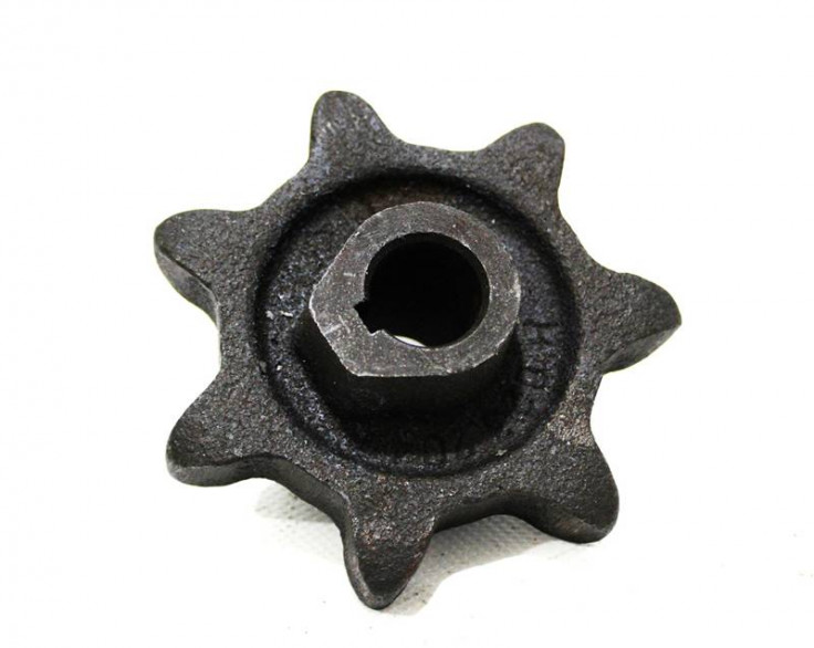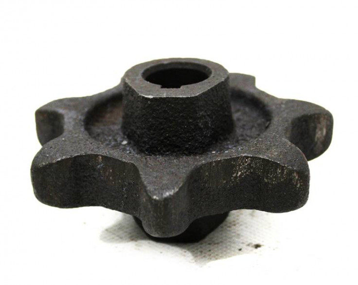 ЗВЁЗДОЧКА ВЕРХНЯЯ ВАЛА ЭЛЕВАТОРА КОЛОСОВОГО И ЗЕРНОВОГО Z=7, ДВУХСТОРОННЯЯ D=20 Н.023.204 представляет собой литую чугунную двустороннюю звездочку под 38 цепь, с количеством зубьев 7 и внутренним диаметром ступицы 20мм. Устанавливается в двух местах: